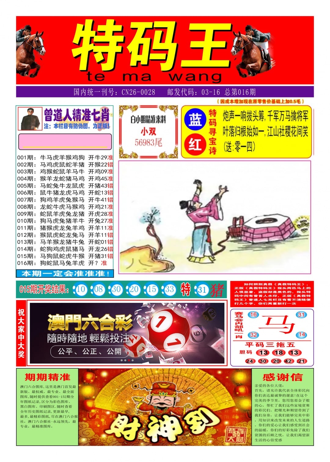 016期: 澳门合数 【合双】 开??准
